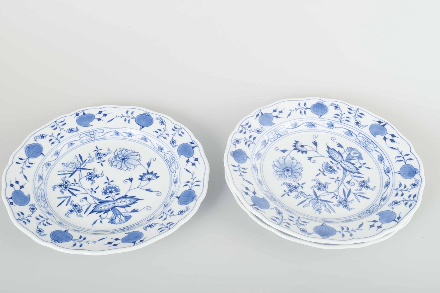 3 middagstallerkener, “Løgmønstret”, midten af 1900-tallet.
