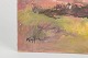 Stemningsfuldt impressionistisk landskab med bred horisontlinje under en lys, næsten opløst himmel. De varme jordfarver i forgrunden møder et diset rosa-brunt bælte af træer og buskads, udført med bløde, atmosfæriske penselstrøg. Et poetisk og stille naturmotiv, hvor lys og tone danner billedets egentlige centrum.