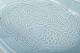 Unikt fad i kinesisk-inspireret stil med formpresset dekoration af fisk og lyseblå celadonlignende glasur. Signeret.