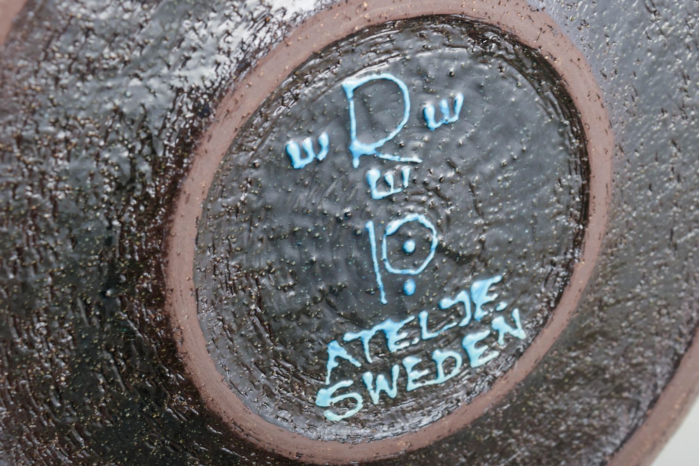 Inger Persson (f. 1936) var en af Rörstrands mest markante designere i 1960’erne og 70’erne. Hun arbejdede både med industrielt design og atelierproduktion, hvor hun eksperimenterede med stærke farver og grafiske dekorationer. Hendes værker regnes i dag blandt de mest eftertragtede fra perioden, særligt de blå glasurer og håndmalede motiver, som er blevet ikoniske samlerobjekter.