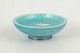 Lav, rund skål i den ikoniske turkise Argenta-glasur dekoreret med indlagt sølvmotif. Skålen viser Kåges karakteristiske balance mellem funktionalitet og dekorativt udtryk og står på en lille fod i klassisk form.