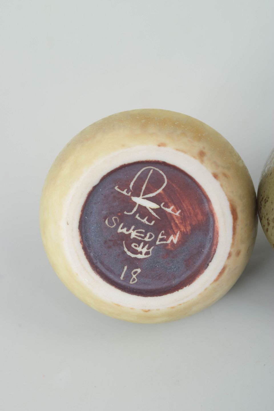 Carl-Harry Stålhane (1920–1990) var en af Rörstrands mest markante formgivere og en central skikkelse i svensk modernistisk keramik. Hans arbejde var præget af en unik balance mellem form og glasur, ofte udført i mindre serier eller unika, hvilket gør hans miniaturevaser særligt eftertragtede blandt samlere i dag.