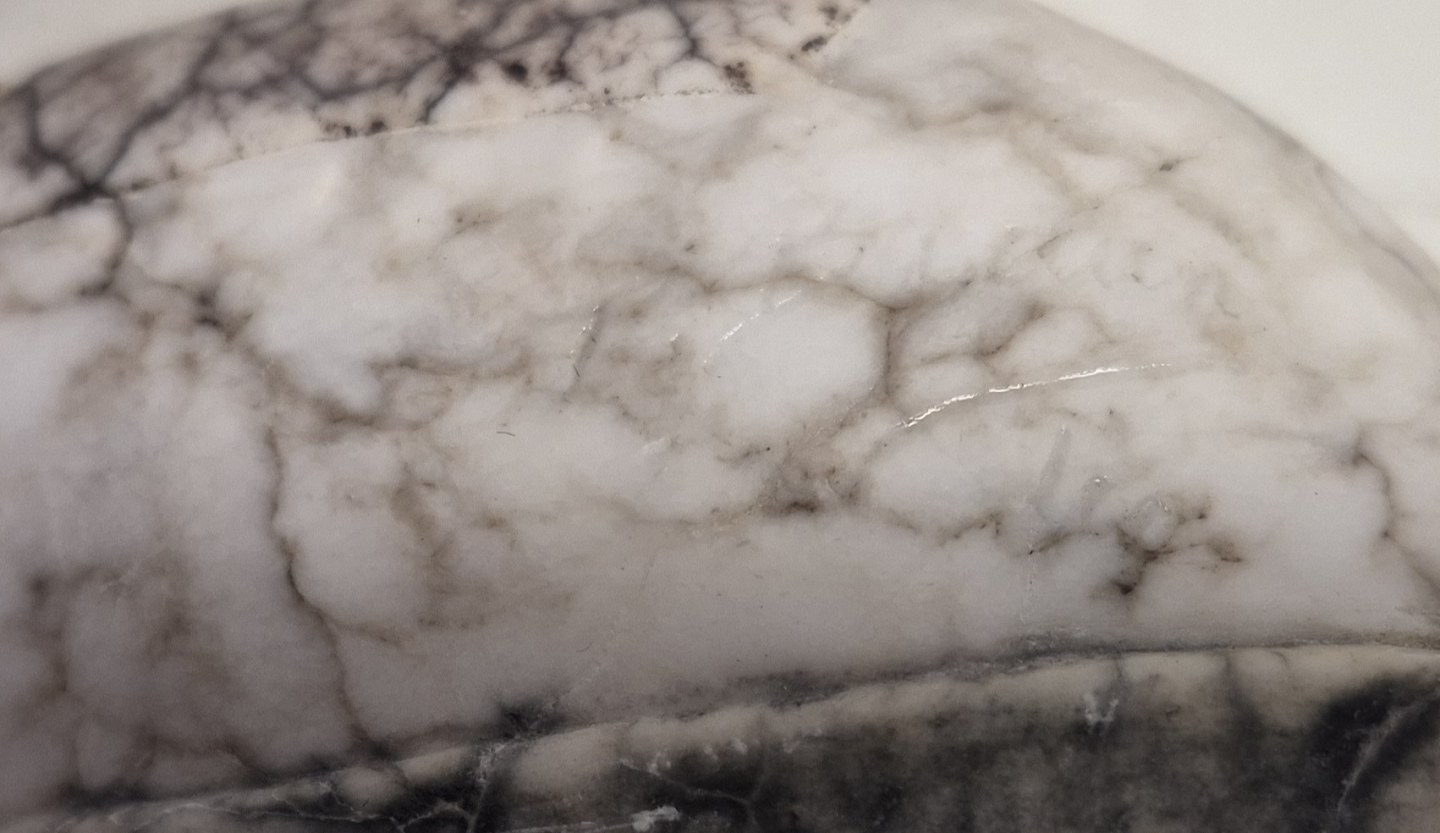 Fin buste i hvid marmor med blødt modelleret pigeportræt og lav sokkel i åretegnet marmor.