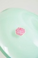 Lav skål i formblæst opalhvidt og grønt glas med organisk, asymmetrisk form og poleret overflade; med original Vetro Artistico Murano-etiket.