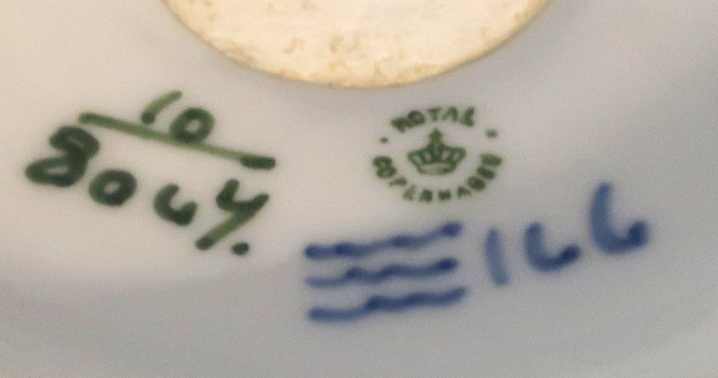 Royal Copenhagen. Blå blomst, flettet. Opsats på fod. Model 8064. Højde 15 cm. Diameter 21 cm. (1 sortering)