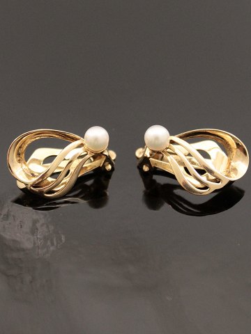 8 karat guld øreclips 1,8 x 1,3 cm. med ægte perle