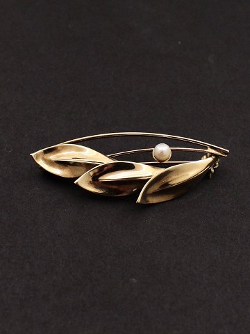 14 karat guld broche L. 5,2 cm. med ægte perle