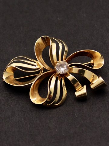 14 karat guld broche 4 x 2,8 cm. med klar sten