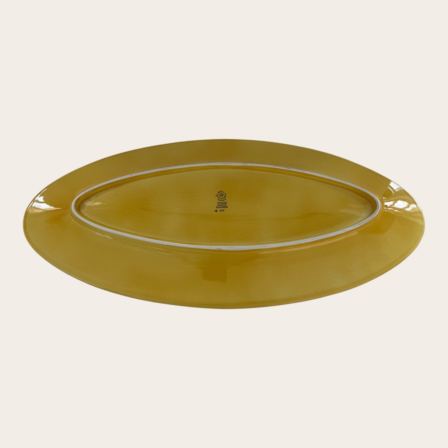 Royal Copenhagen, Aluminium, große Schale, Gelb Nr. 375, 1. Sortierung, 57,5 ​​cm lang, 26 cm breit, Design Ursula Munch Petersen *Guter Zustand*