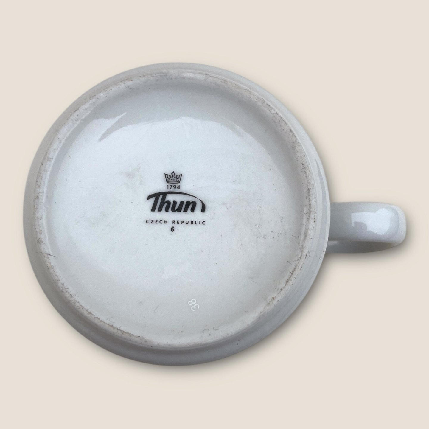Mads Stage, Weihnachtstasse, Weihnachtsmann mit Katze, 9cm hoch, 8cm Durchmesser, Thun *Guter Zustand*