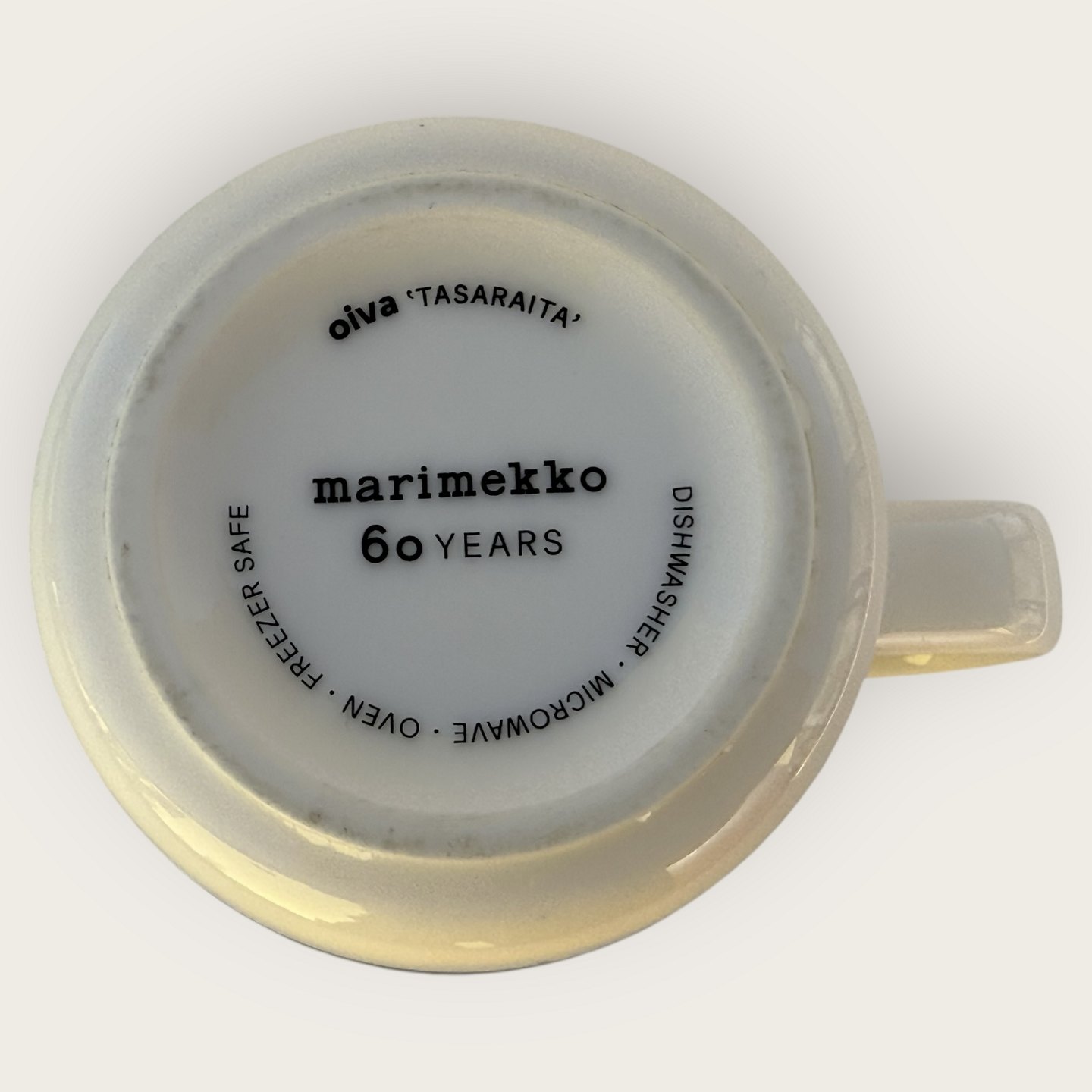Marimekko krus med striber, Oiva Tasaraita, Højde 9,5cm, diameter 8cm *perfekt stand*