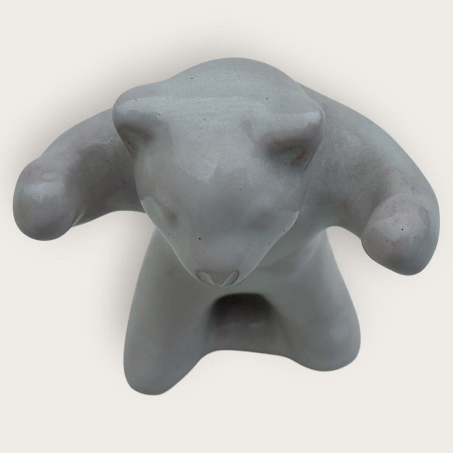 Bornholmsk keramik, Hjorth, Bjørne orkester, dirigent, bjørn med hvid glasur, ca. 8x5cm *Pæn stand*