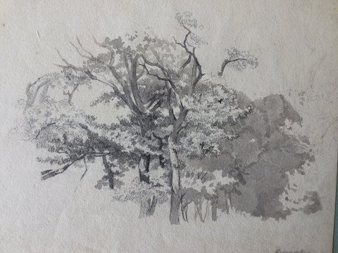 Hermann Carmiencke (1810-67): Studier af træer. Pen og akvarel på papir. Sign.: Carmiencke Uden ramme 15½ x 19 15725