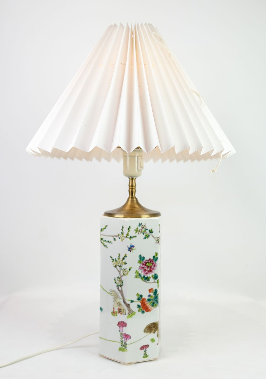 Chinese table lamps, porcelain, white shade, 1920