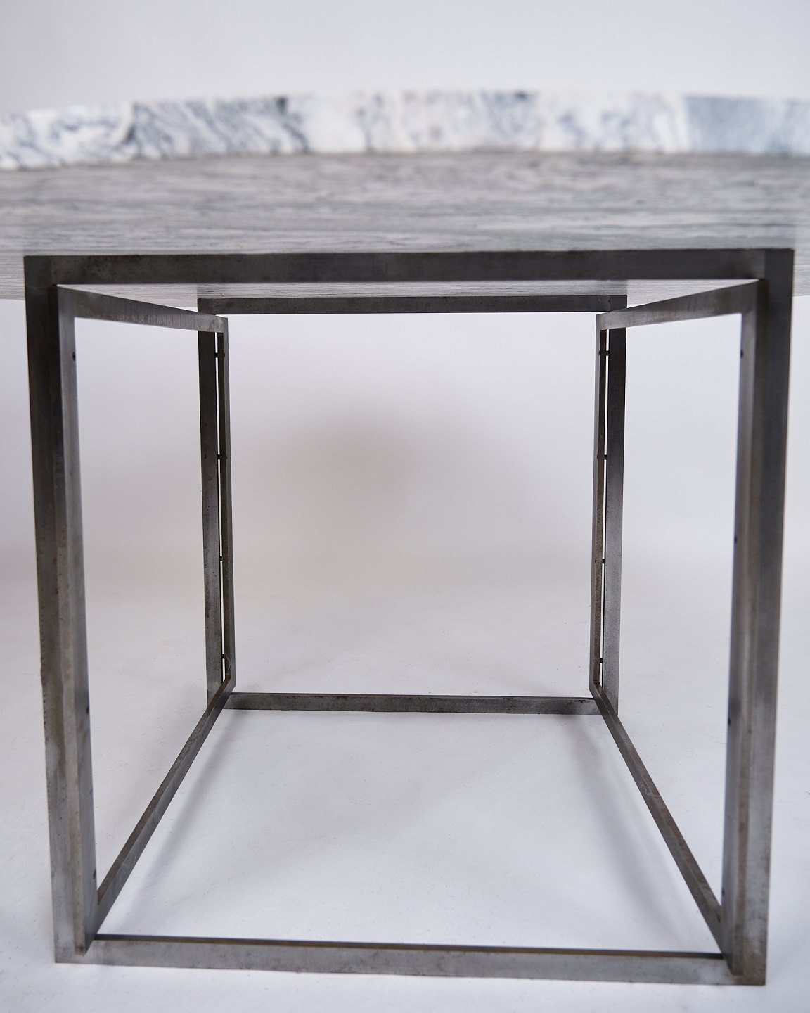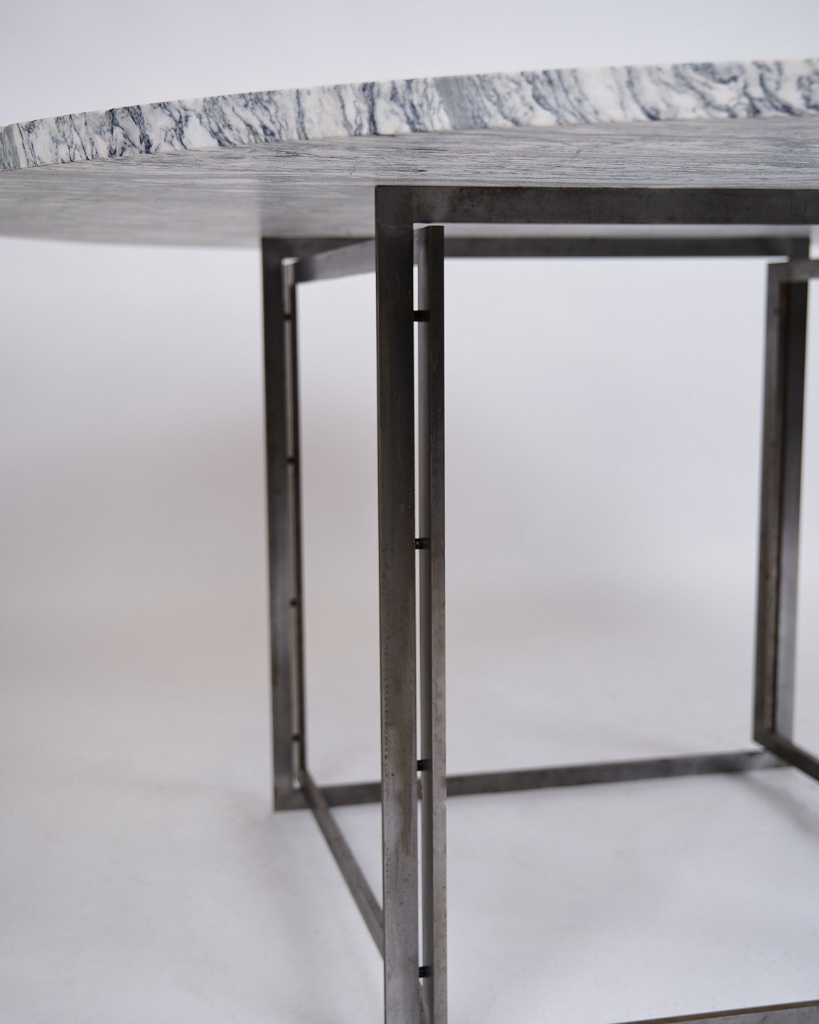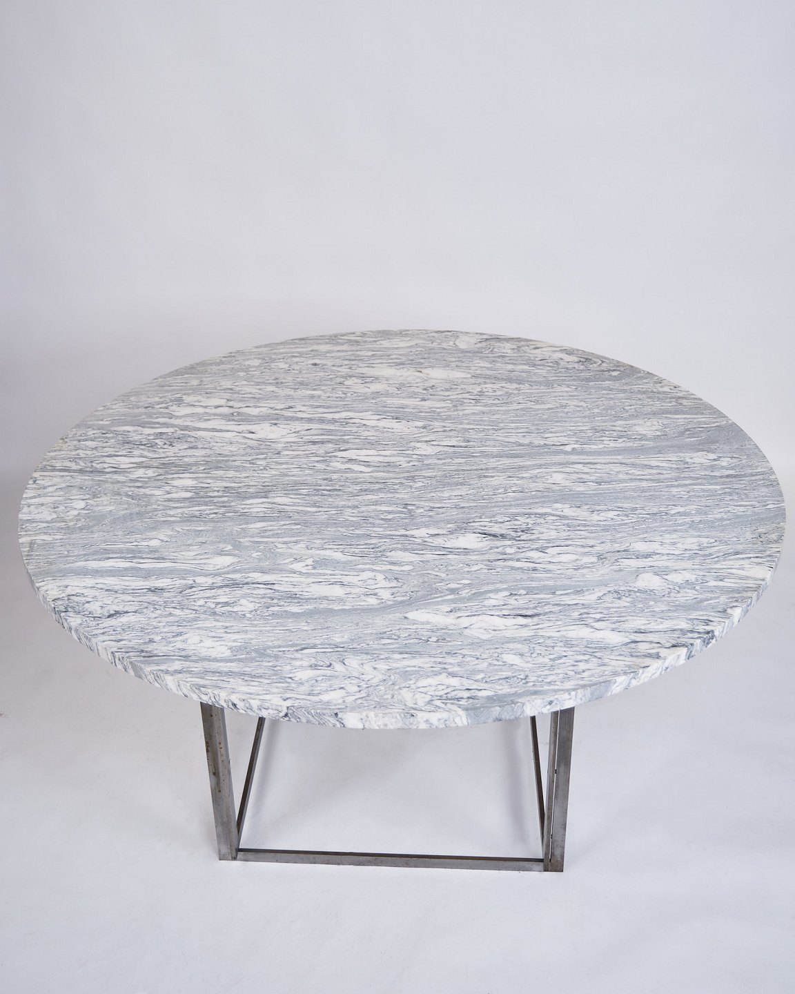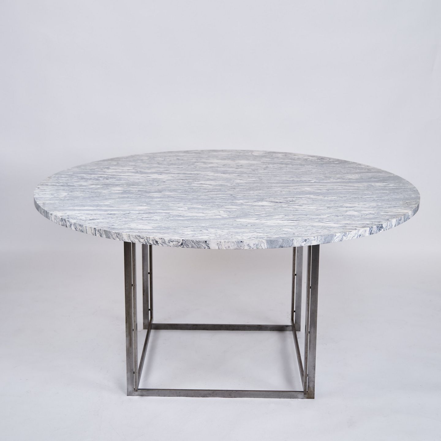 Kontakt os vedrørende prisSjældent spisebord, model PK54, designet af Poul Kjærholm og produceret af E. Kold Christensen i 1960’erne. Bordet er udført med en massiv rund cipollini-marmorplade, båret af et stålstel, karakteristisk for Kjærholms minimalistiske formsprog.
