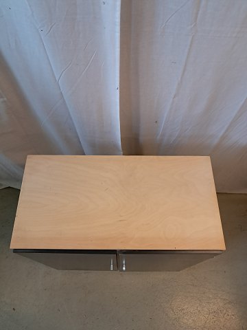 | At-bo reolkasse i krydsfiner med låger, fra 2000erne. Den har brugsspor og specielt på toppen af lågerne  .