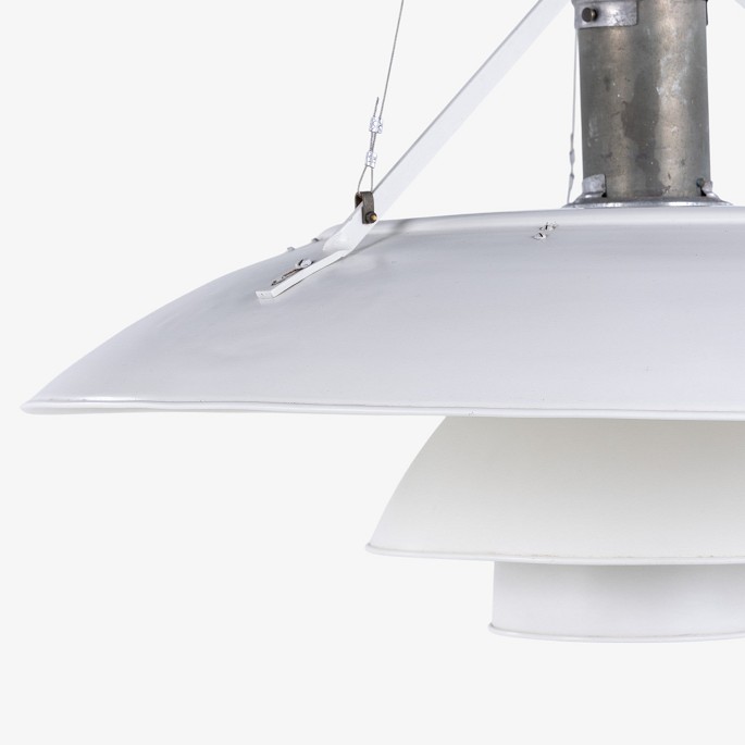 PH 8/6 - 'Tennislampe'-pendel i hvidlakeret aluminium med fatning i forniklet metal.