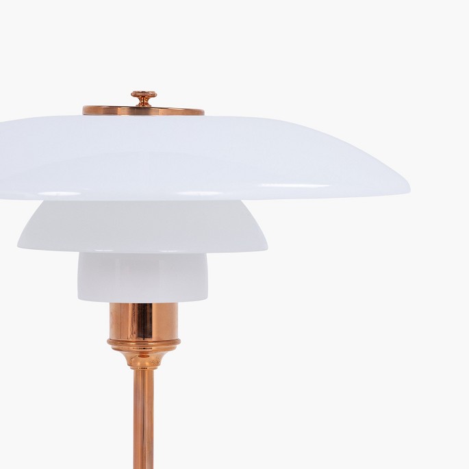 PH 3½-2½ - Bordlampe med overskærm i kobber/hvidt opalglas (begge skærme medfølger) og mellem- samt underskærm i hvidt opalglas. Jubilæumsudgave. Original kasse medfølger med certifikat.