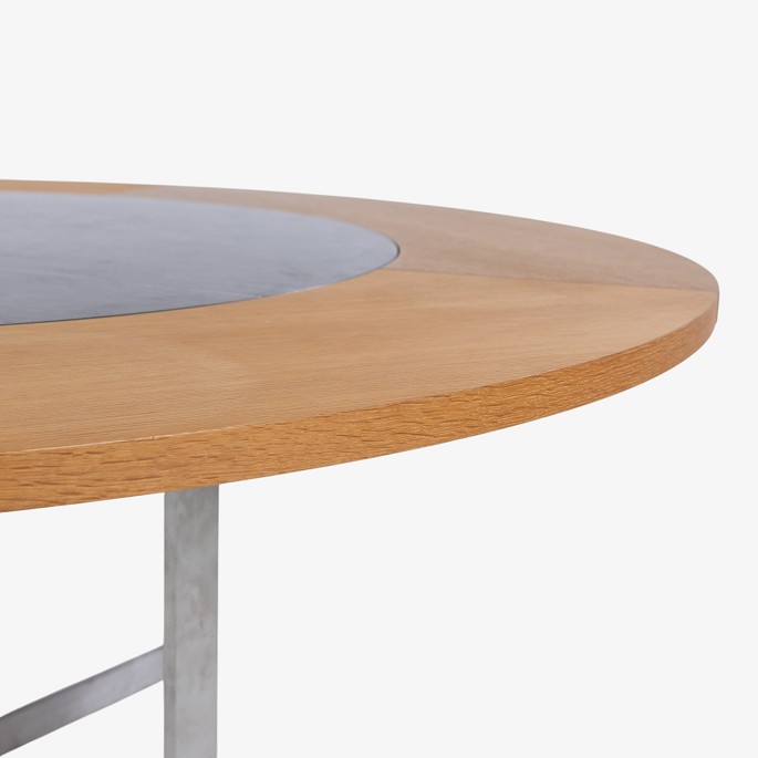 JH Spisebord med stel i stål og plade i grå marmor m. tillægsringe i olieret eg.