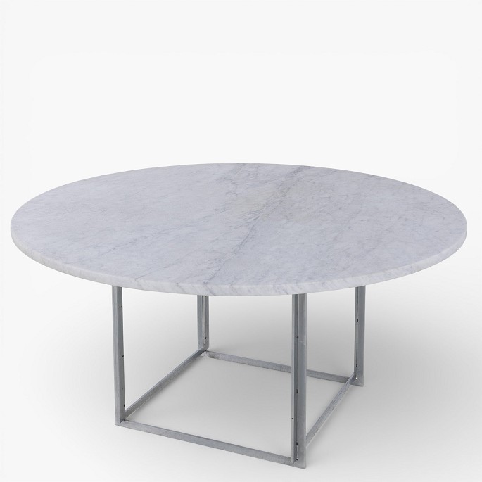 PK 54 - Rundt spisebord med lys flintrullet marmor-plade på stel af matforkromet stål. Formgivet i 1963.