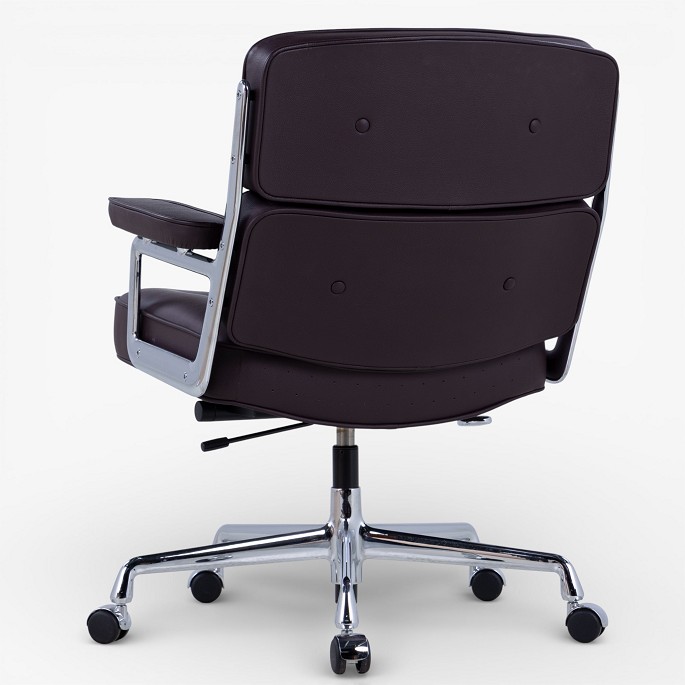 ES-104 - Kontorstol i mørkebrunt læder m. armlæn og stel i stål m. højdejustering. Mærket fra producent.