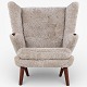 AP 19 - Nybetrukket Bamsestol i lammeskind (farve: Moonlight) m. skammel.