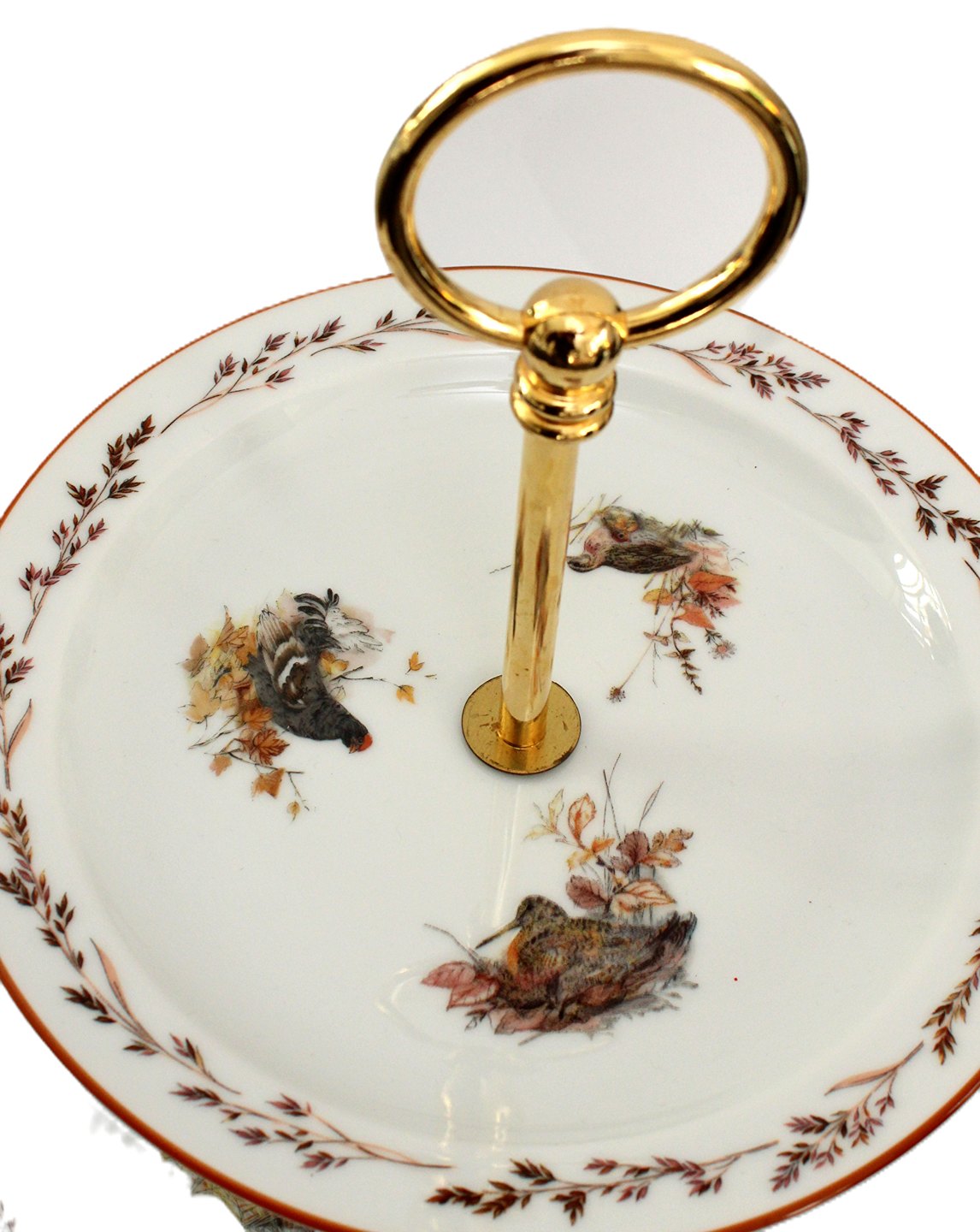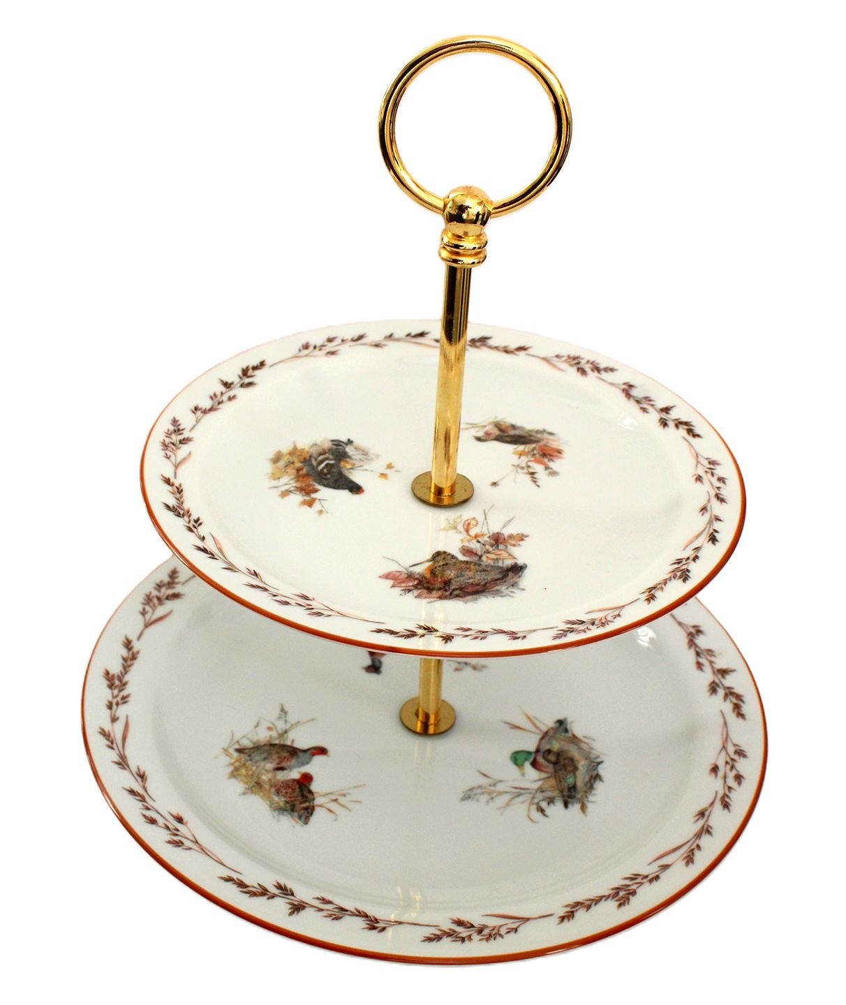 Jagtstellet designet af Mads Stage for Imerco. Tallerken etagere, Tallerken opsats. Yderst sjælden. Der er 3 forskellige vildtfugle på hver tallerken, som svarer til de 6 vildtfuglemotiver på stellet.