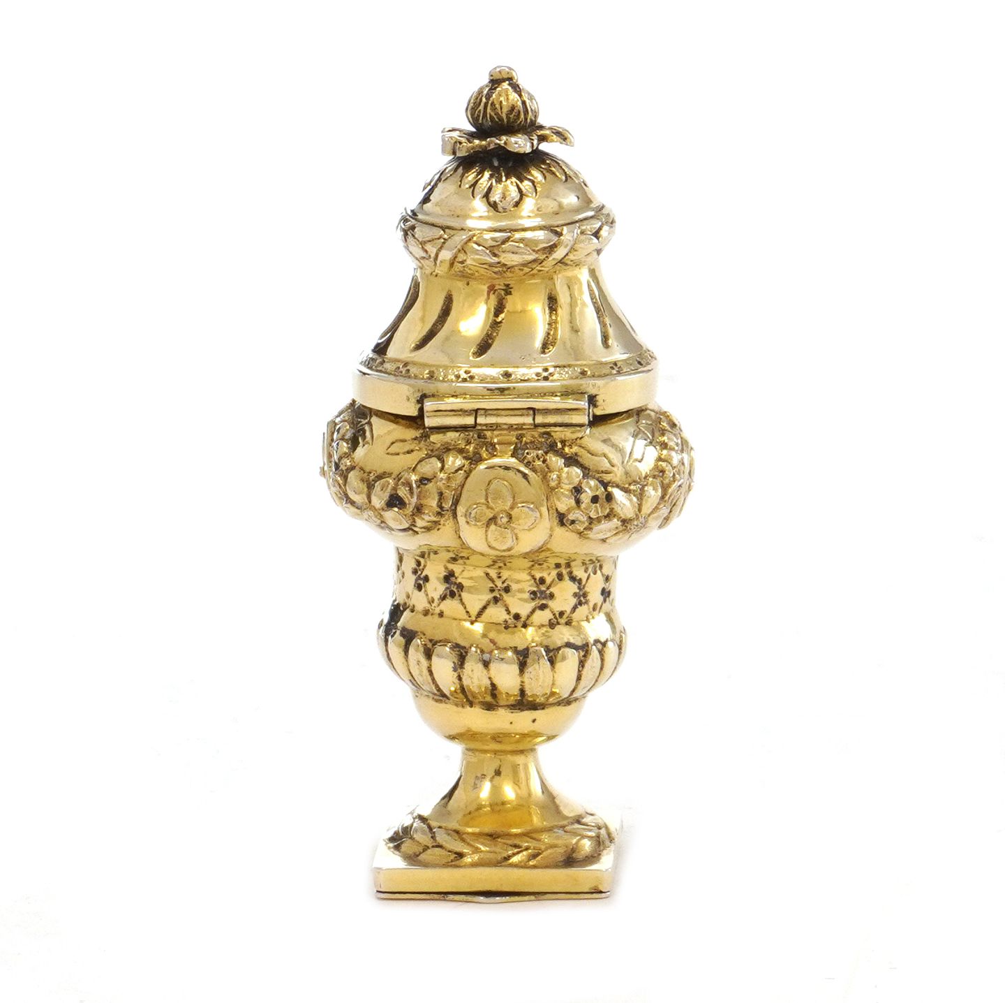 Hovedvandsæg i delvist forgyldt sølv af Christian Nielsen Lindbach, 1767-1815, København. H: 7,6cm