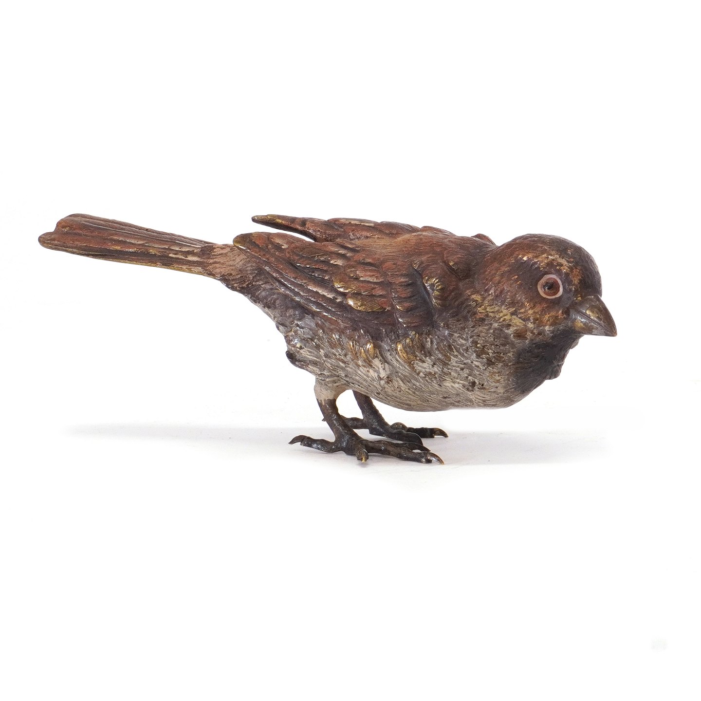 Polykrom dekoreret wiener bronze i form af fugl. H: 5,5cm. L: 14cm