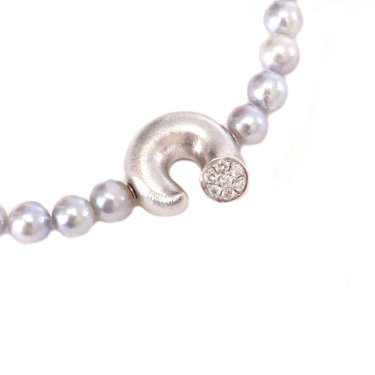 Ole Lynggaard 14kt hvidgulds lås "Optimisten" med brillanter og tilhørende kulturperlekæde