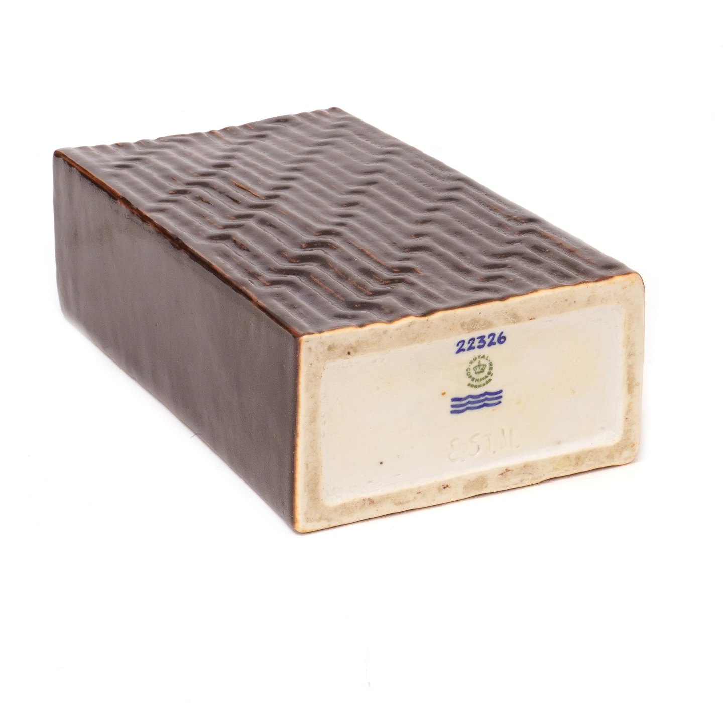 Eva Stæhr-Nielsen for Royal Copenhagen firkantet stentøjsvase med mønster i relief 22326