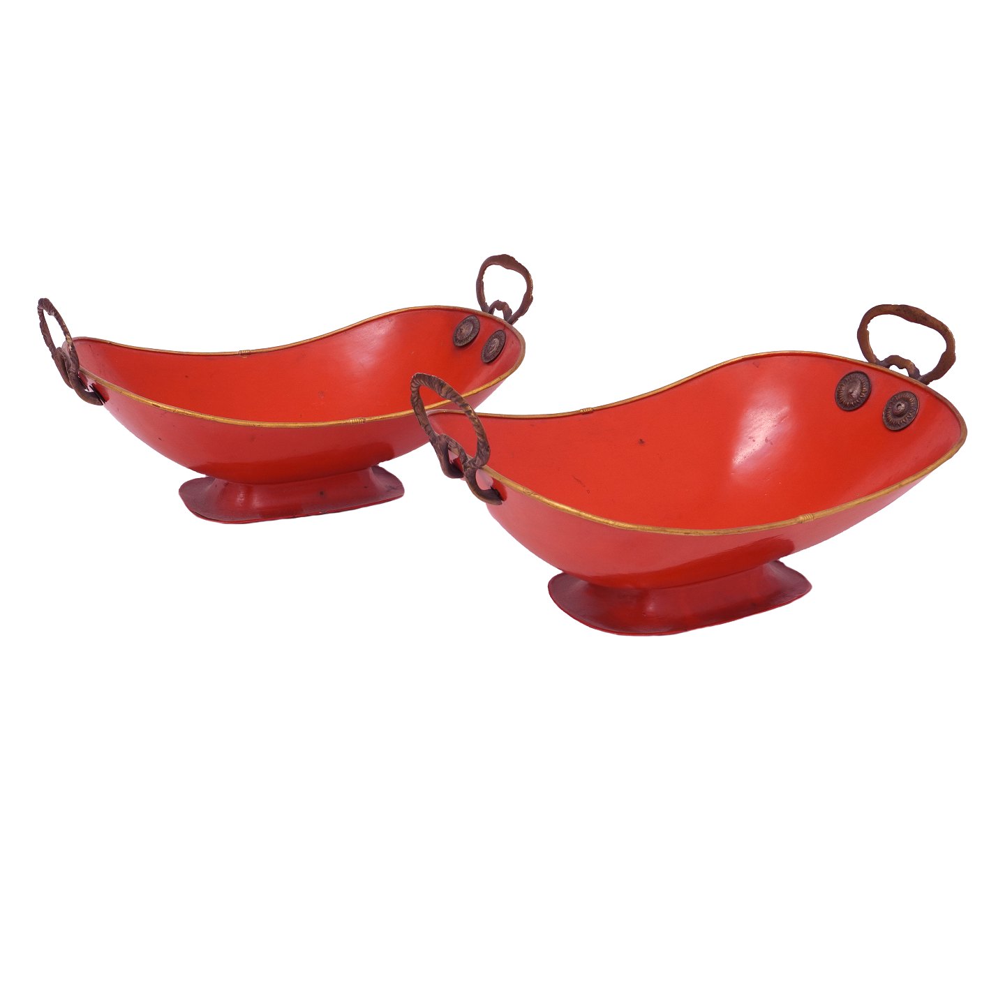 Pair of red decorated metal baskets. Denmark circa 1840 H: 12cm. L: 26cm Item number: 880