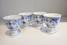 4 stk. Kgl. Musselmalede, halvblonde æggebægre. Sælges. stykvis.