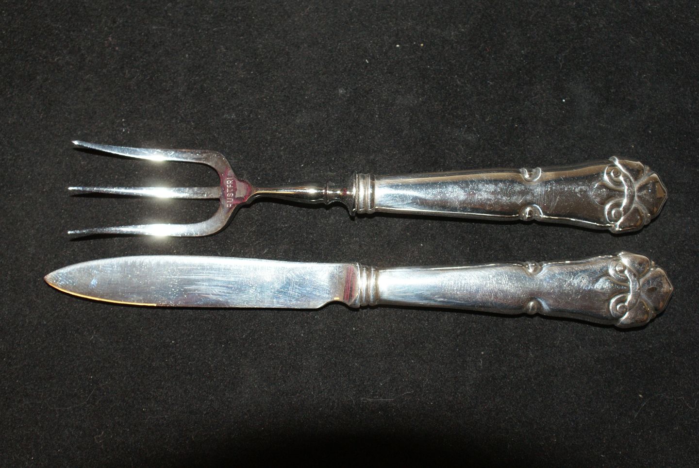 Fruit / Dessert cutlery French lily Silver Knife Length 17 cm. Fork Length 16 cm. Beautiful and well maintained The cutlery is polleret and packed in a bag.