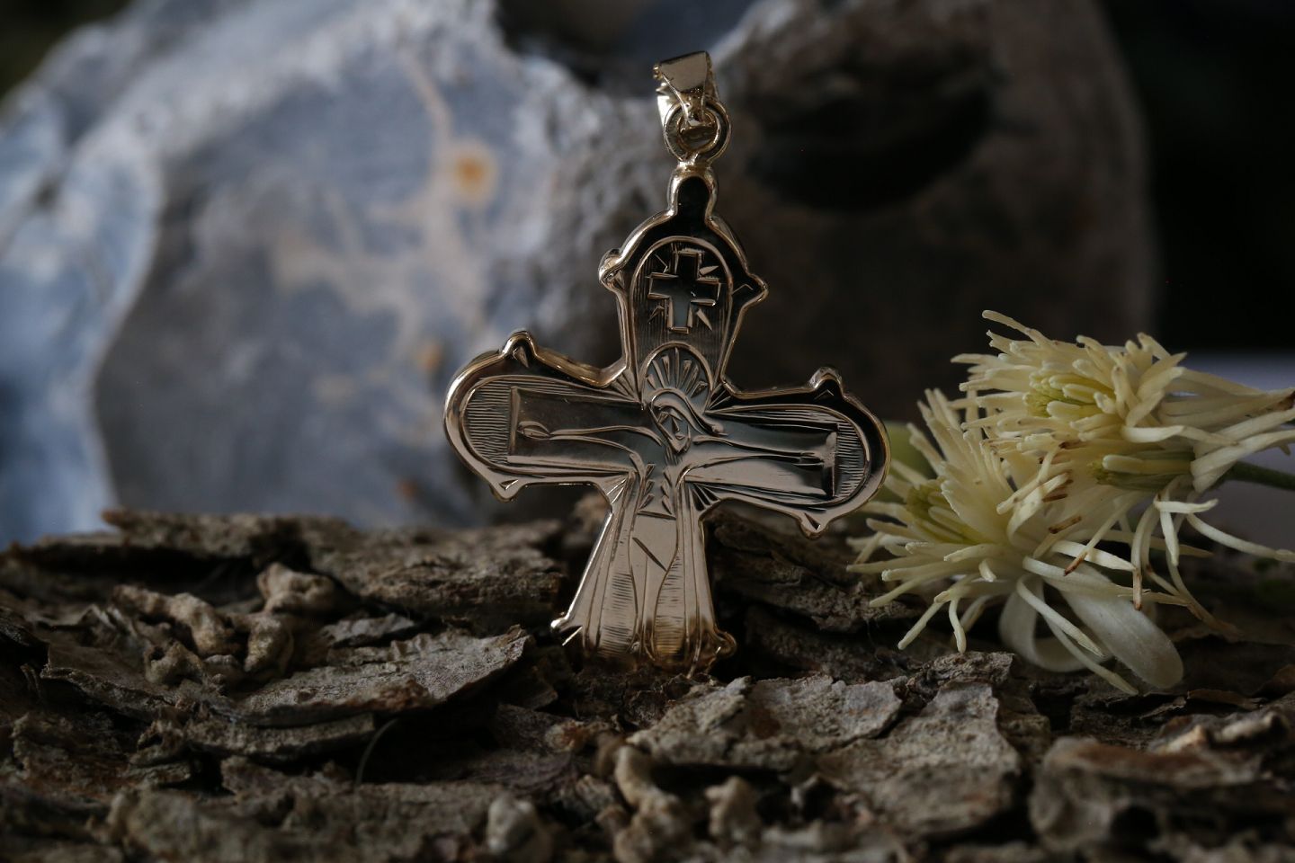 Gold cross in 14 carat gold for necklace. Classic pendant.