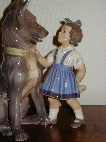 Stor Dahl Jensen Figur, Pige med Schæfer SOLGT