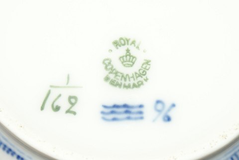 Stor Kongelig Musselmalet Riflet Mælke / Vand - kande. Indhold over 1½ liter. Produceret 1923-1934 Dek. nr. 1/162 2.Sortering Højde 20 cm. Diameter ca. 15 cm. Flot og velholdt stand.