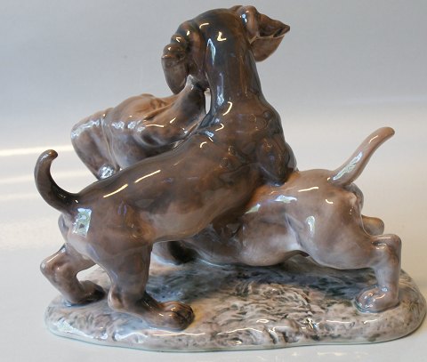 Rare Dahl Jensen Figurine of Two Dachshunds playing Dek. No. 1257 Factory first Height 15.5 cm. Base: 20 x 13 cm. Perfect condition.