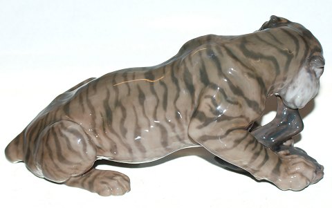 Dahl Jensen Figurine, Tiger with leg of venison Decoration number 1285 Factory first Length 24 cm. Perfect condition.