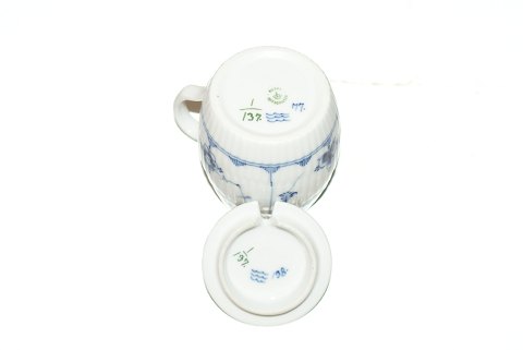 Sjælden Kongelig Musselmalet Riflet, Senneps kande Dekorationsnummer 1/137 Produceret mellem 1898-1922 1.Sortering Højde 10,5 cm. Flot og velholdt stand.