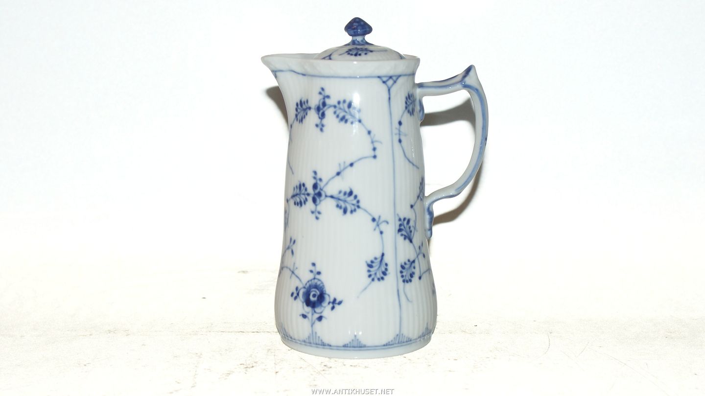 Kongelig Musselmalet Riflet, Sjælden Chokoladekande Produceret mellem 1898-1923 Dek. nr. 1/32 1.Sortering Højde 16,5 cm. Perfekt stand.