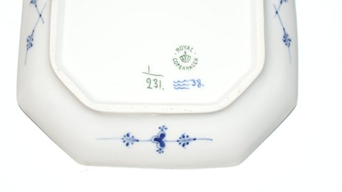 Kongelig Musselmalet Riflet, Firkantet Fad, Sætte fad Fra 1898-1923 Dekorationsnummer 1/231 1.Sortering Mål 18 x 18 cm. Perfekt stand