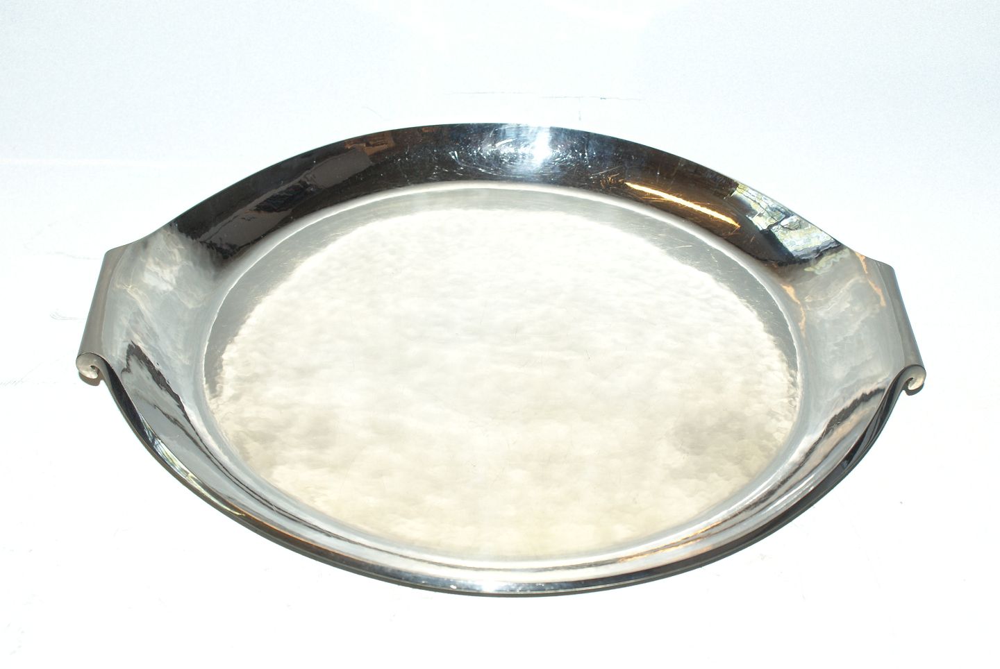 Large tray with handles, Evald Nielsen Silver Stamp: Sterling Silver, Evald Nielsen, LV, Denmark, 925S Silversmith: Evald Nielsen Size 36 x 28.5 cm. Beautiful and well maintained.