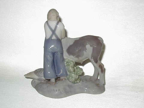 Large Bing & Grondahl Figurine, Girl, Calf and Goose Decoration number 2272 Factory Second (Small firing crack at base) Length 20.5 cm. - height 19.5 cm. Perfect Condition