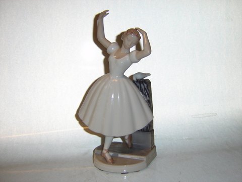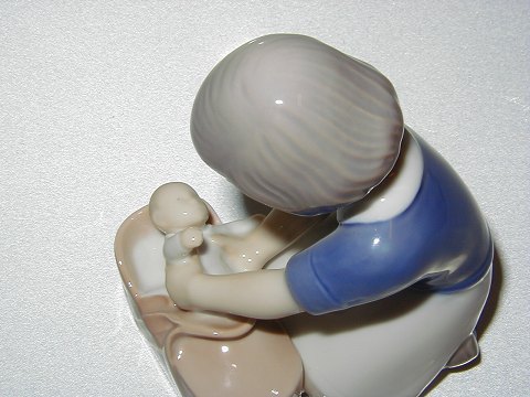 Sjælden Bing & Grøndahl Figur, Pige med Dukke i Kurv. Dekorationsnummer 2307 2. sortering Højde 11 cm.