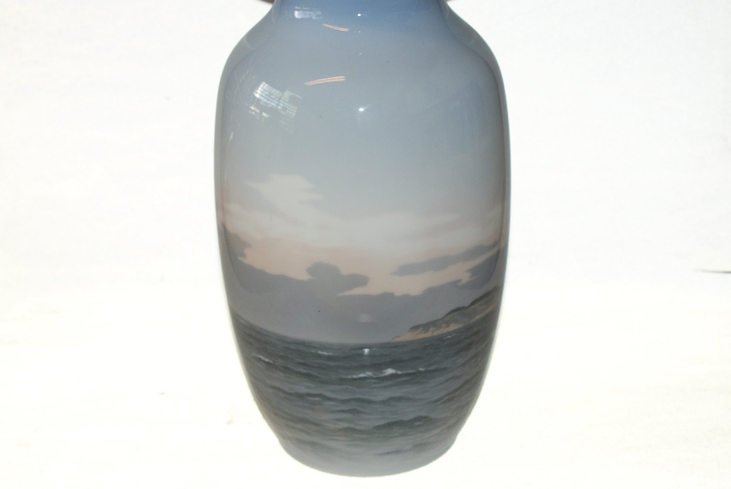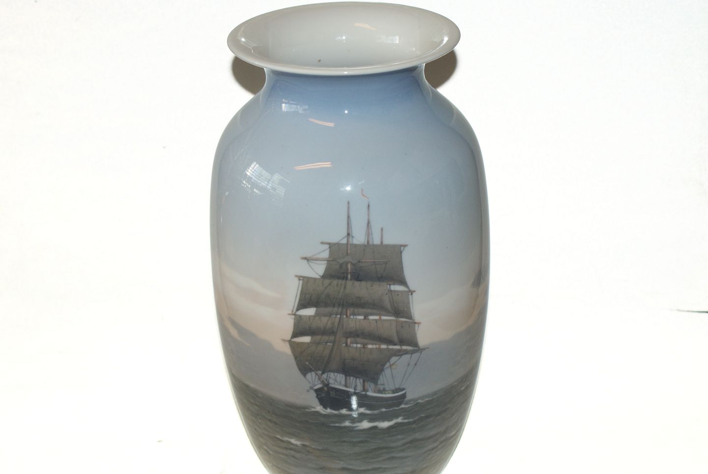 Royal Copenhagen large floor vase with motif of large three-masted sailing ship at sea.