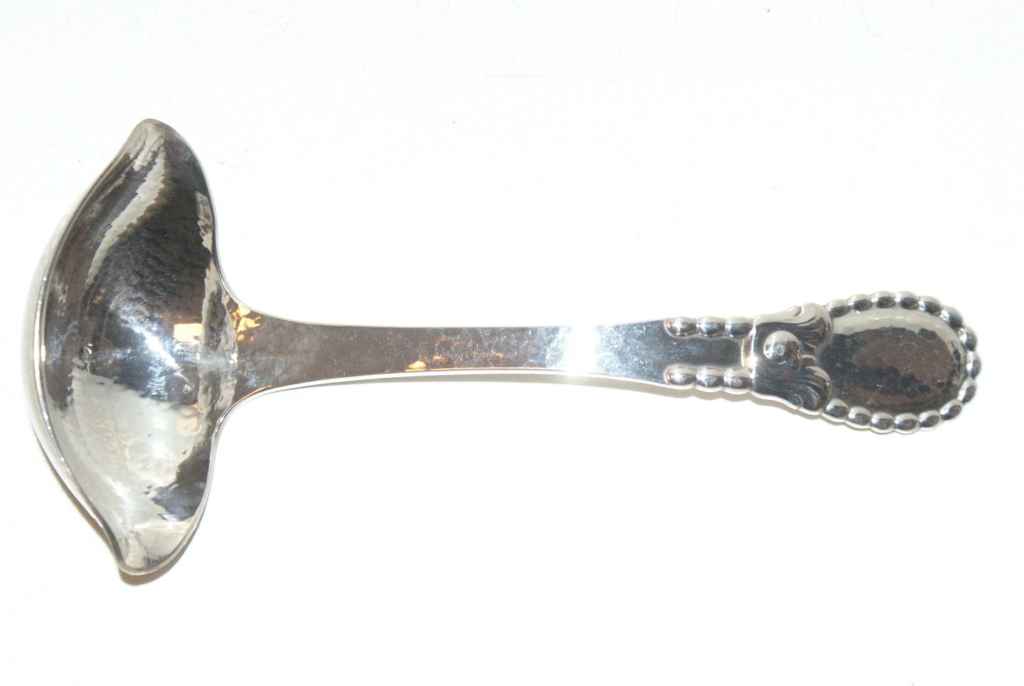 Evald Nielsen Nr. 13 Sauceske m/ Gravering Længde 17,5 cm. Velholdt stand Alt bestik er polleret og pakke i pose