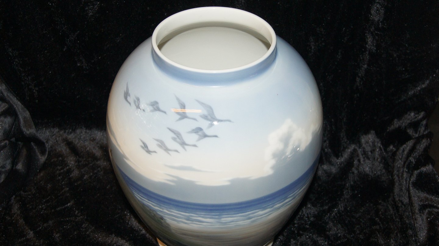 #Royal Copenhagen #Vase med Gæs og Ænder i landskab Dek Nr. #1508/#808 Højde 30 cm. 2 sortering Pæn og velholdt stand