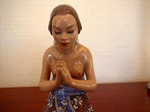 En flot Dahl Jensen Figur af Malaykvinde i Aftenbøn. Dekorations nummer 1253. 1. sortering. Højde 16,5 cm. Fejl fri og velholdt