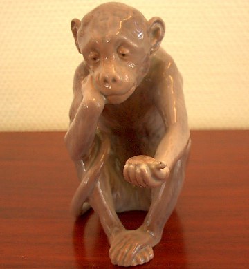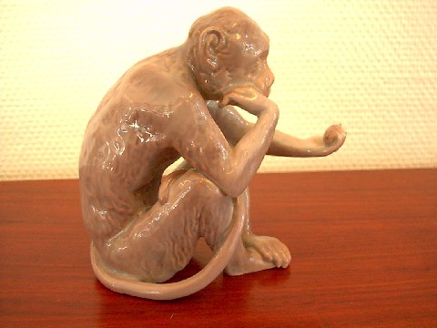 Bing & Grøndahl Figurine of Monkey, signed by Dahl Jensen. Decoration number 1510, factory first. Height 14 cm., length 13 cm. Perfect condition.